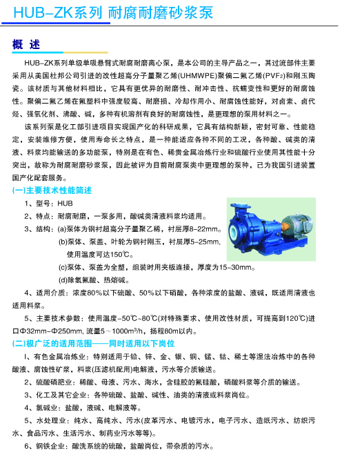 >> HUB-ZK系列耐腐耐磨砂浆泵